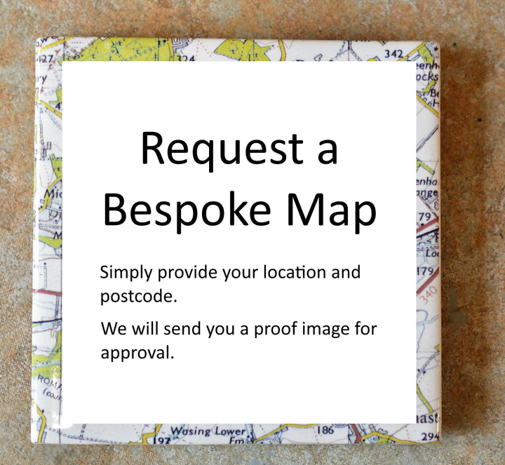 Many of the Vintage Map products can be produced for your specific location. Simply select the product you desire from the pull down and provide the location name and post code and we will produce a map proof for your approval, which we send by email.
