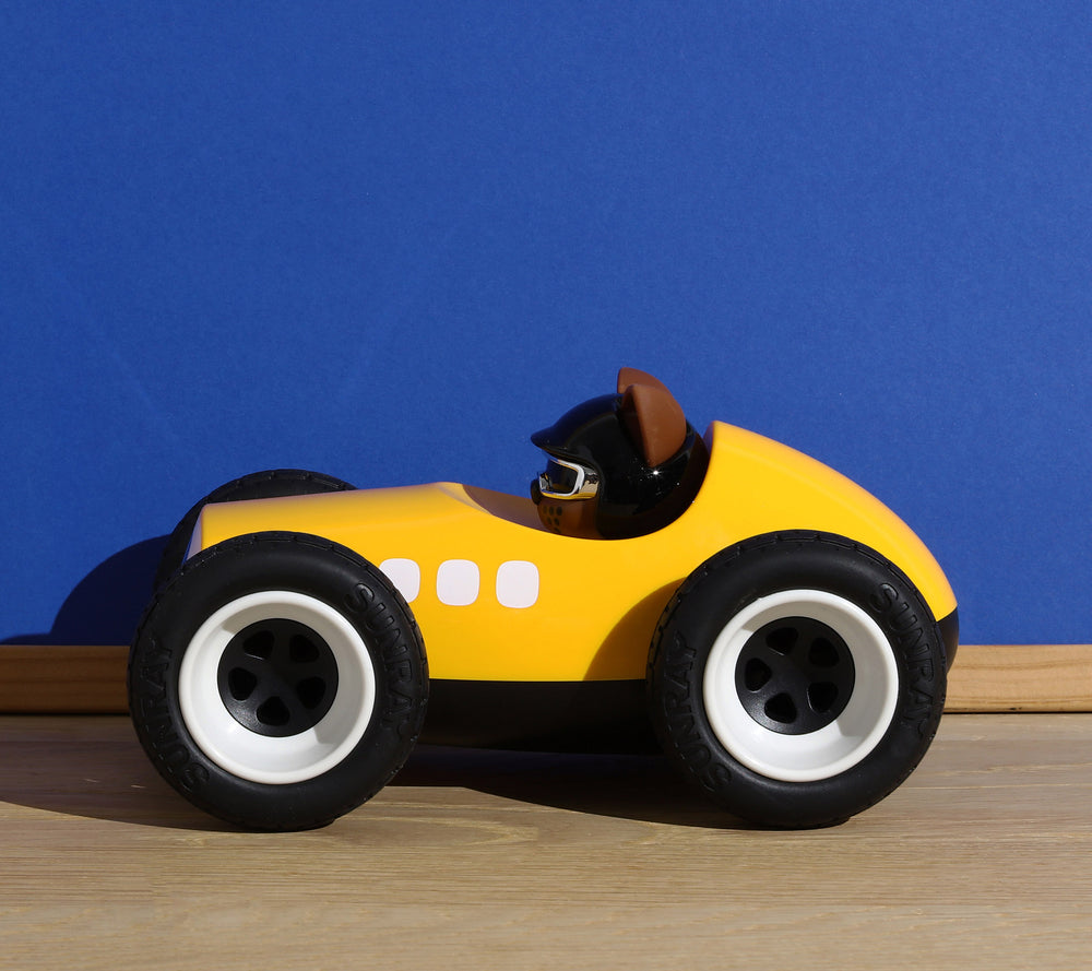 EGG ROADSTER featuring PILOT KARLOS. Scrambler, Sunnysider and Hardy make up the Egg Roadster super-trio. Pilot Karlos making his first appearance sitting all snug in his crazy-wild egg shaped racer. Now, Rufus (Dog Car) has a fierce competitor and he will need to wear his best game face. Let’s talk about those crazy wheels! The thinking behind the extravagant shape is an amalgamation of the beefy 80’s yo-yo and rally car wheels of the same era and yes, they are as impossibly deep as could be made  and to give them an even wider stance there is an added exaggerated lip. These wheels are called the 5 spoke wacky classics, wrapped in Sunray rubber. Anyway, let’s not waffle. Line up Rufus and Karlos on the grid and let’s get racing.