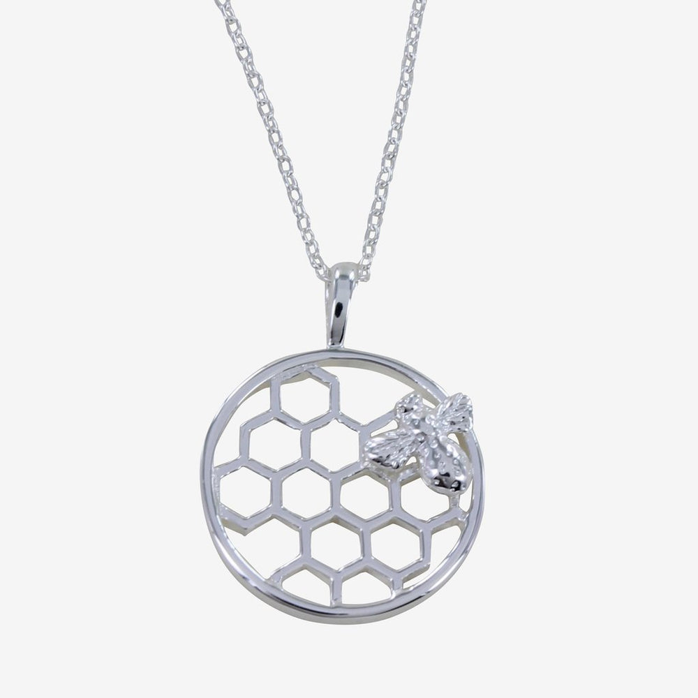 Sterling Silver Bee and Honeycomb Necklace is just delightful. Crafted from the finest quality sterling silver, the necklace has a wonderful high shine finish which catches the light as you move. This necklace has exquisite detailing, with the cute little bee sitting prettily on a honeycomb shaped pendant. The pendant hangs from a sterling silver chain which is adjustable from 16 to 18 inches.