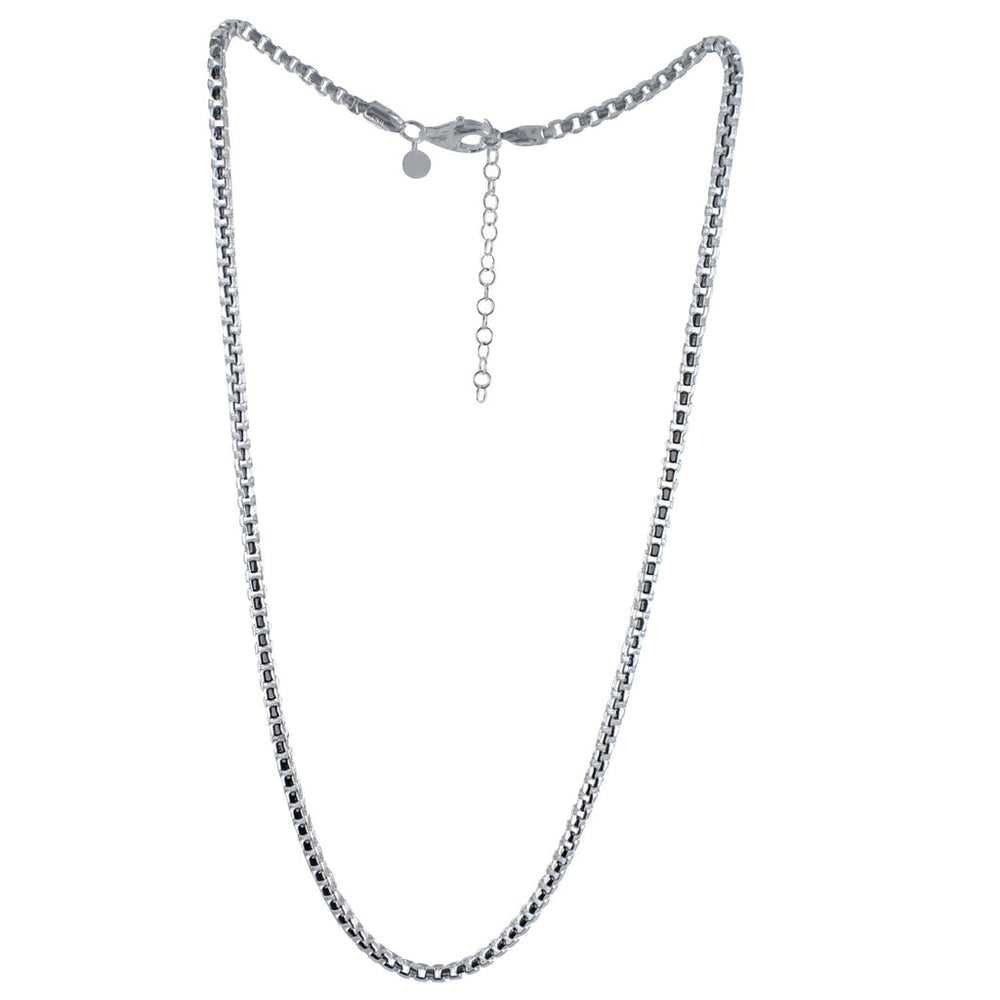 Large Box Chain is a bold and distinctive accessory that seamlessly blends modern style with a touch of rugged charm. This sterling silver necklace features a classic box chain design that exudes strength and masculinity. With a superb weight to it, this necklace is sure to be worn and worn. This necklace effortlessly complements any casual or semi-formal ensemble and will make a great gift for the modern man.
