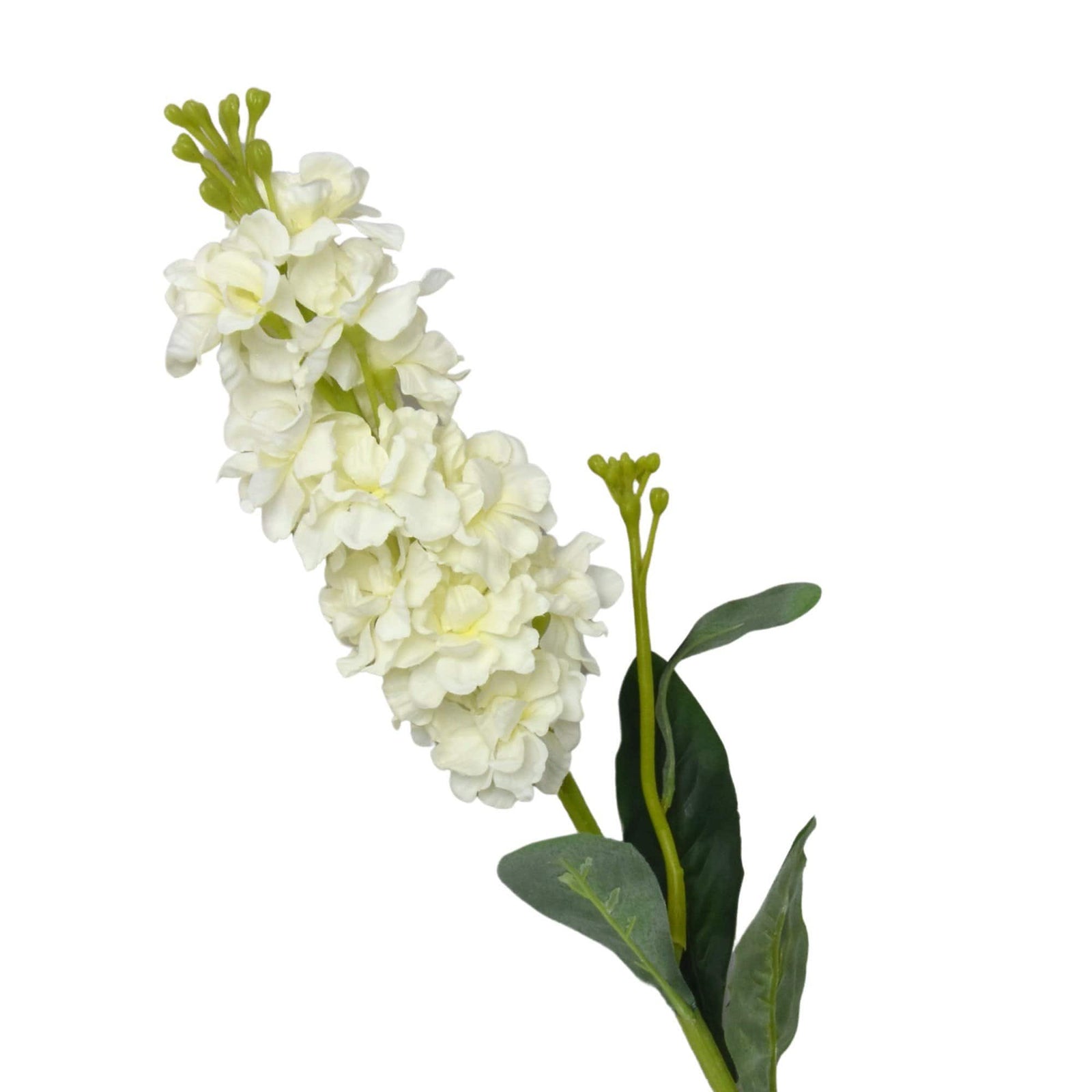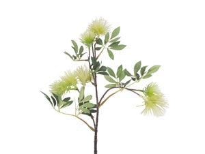 Single Stem Faux Grass with 3 Billy Button Heads - White