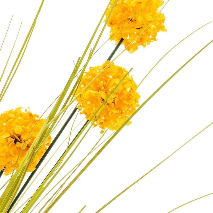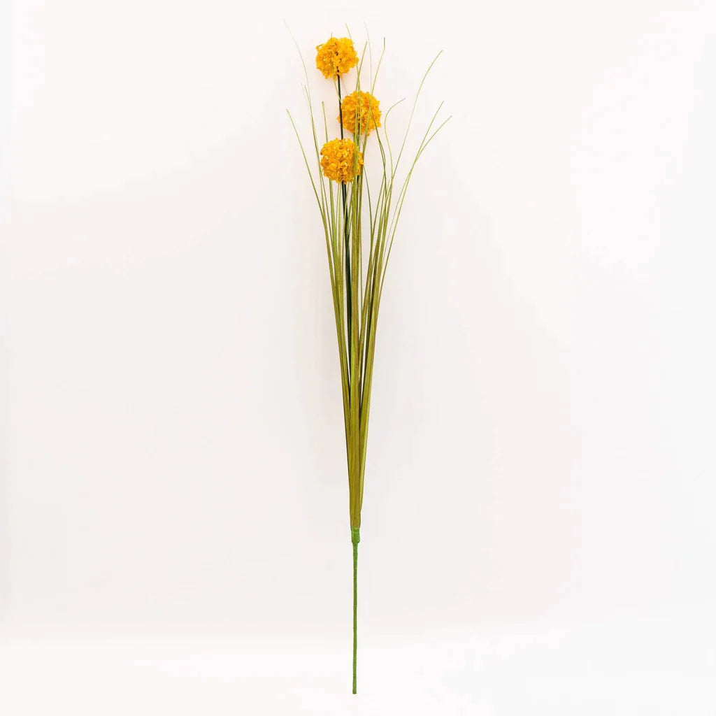 Single Stem Faux Grass with 3 Billy Button Heads - Yellow