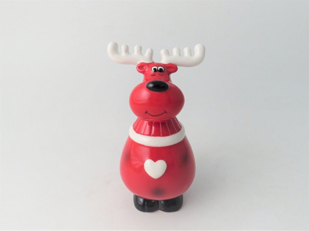 This cheery ceramic red-nosed reindeer will add a sweet touch to any space with its charming heart detail!