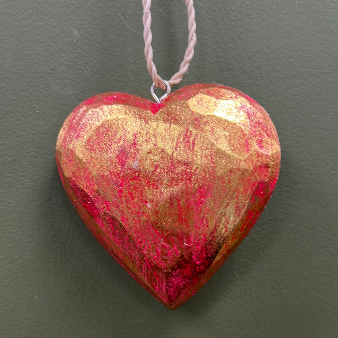 Medium Solid Wooden Hanging Heart - Red/Gold