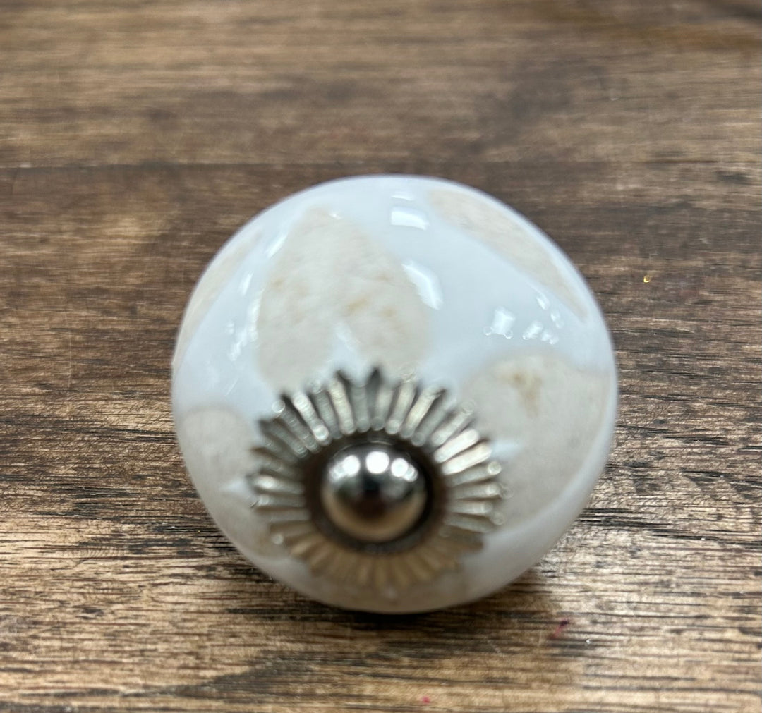 White with Beige Crackle Flat Knob