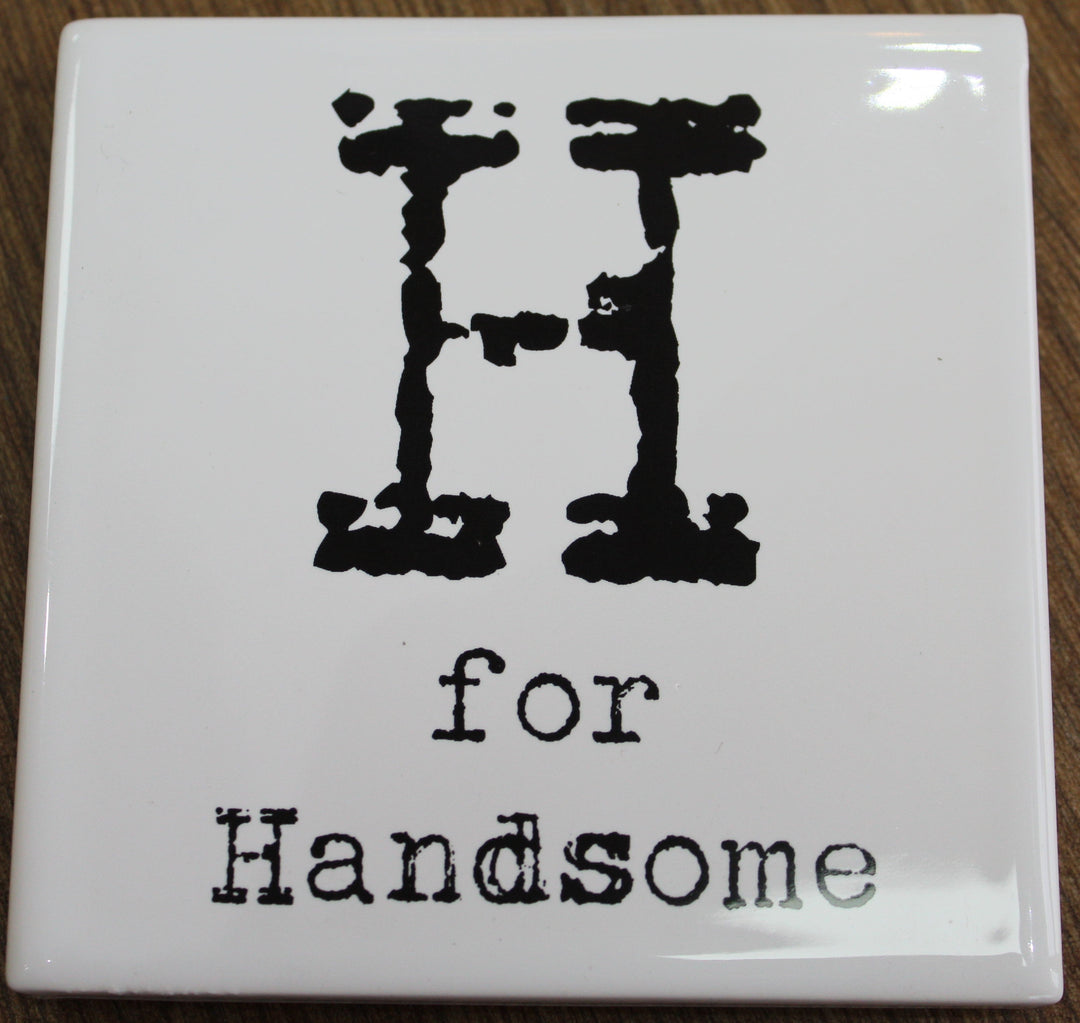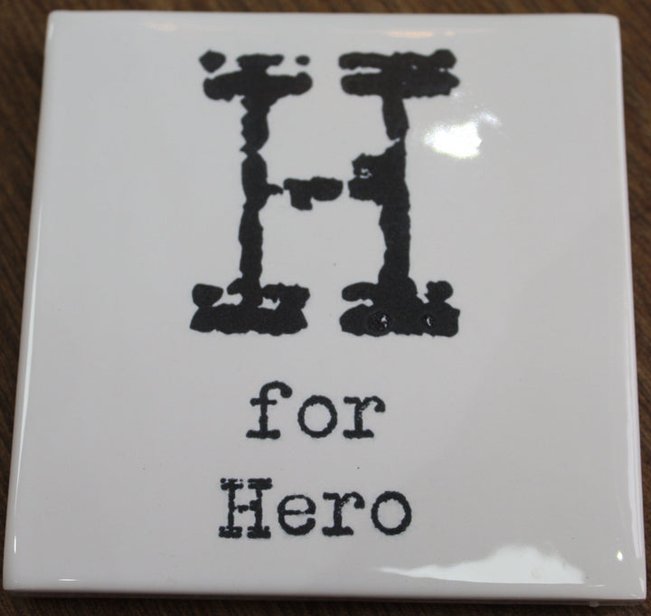 Retro typeface, Earthenware Tile. Come individually boxed, perfect as a small gift.