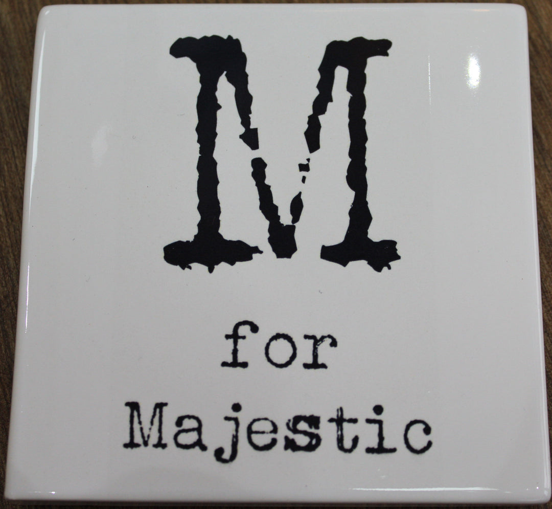 Retro typeface, Earthenware Tile. Come individually boxed, perfect as a small gift.