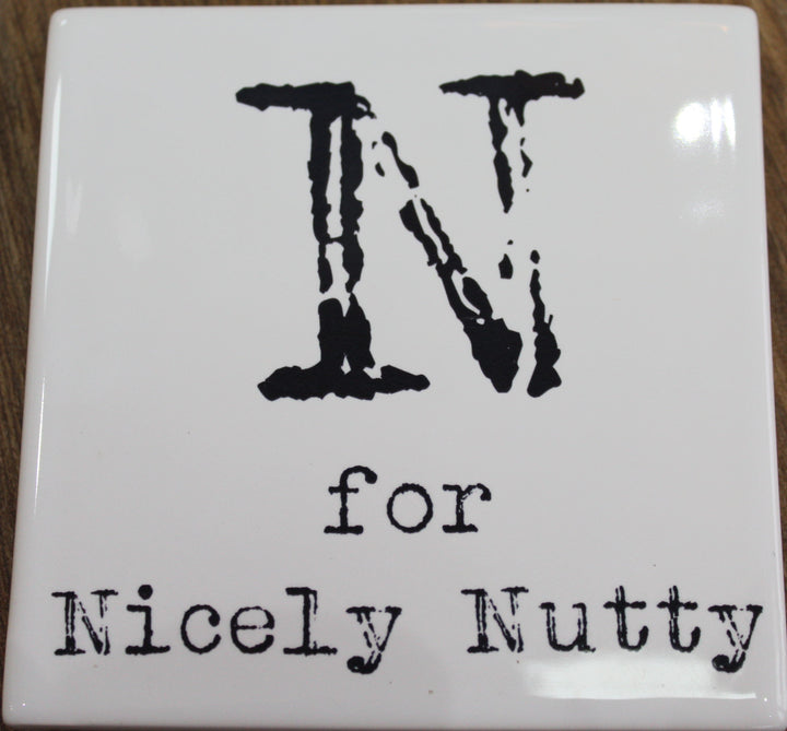 Retro typeface, Earthenware Tile. Come individually boxed, perfect as a small gift.