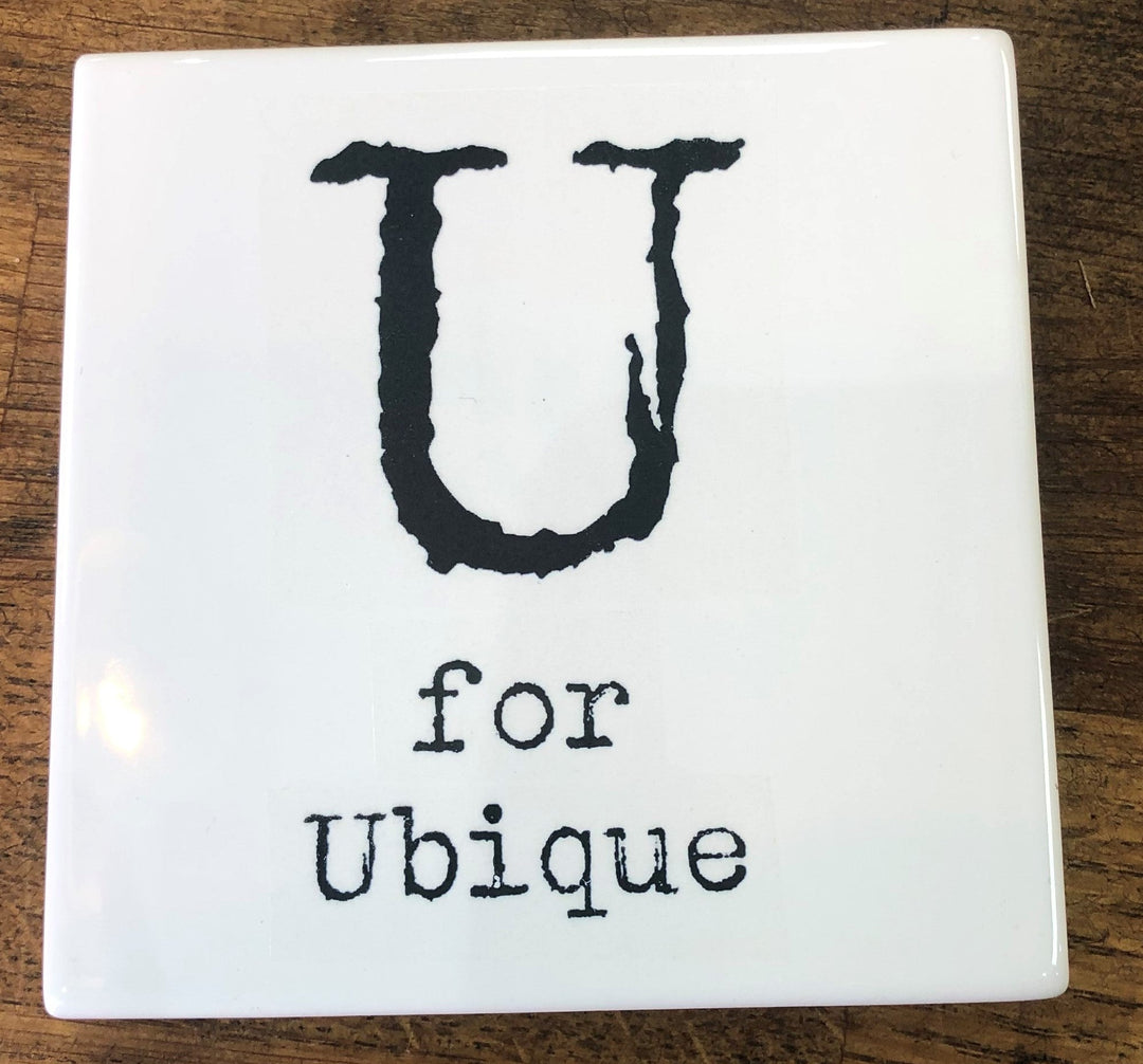 Retro typeface, Earthenware Tile. Come individually boxed, perfect as a small gift.