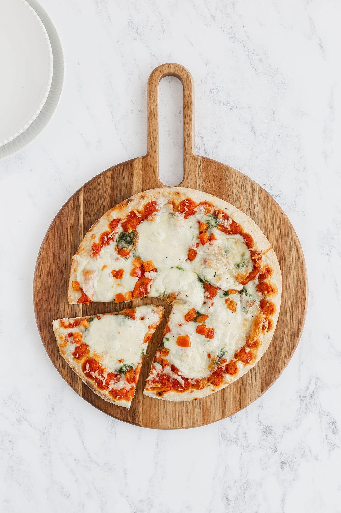 Sleek, stylish, and made for pizza night. The acacia wood board features a natural finish that lets the natural grain peek through.