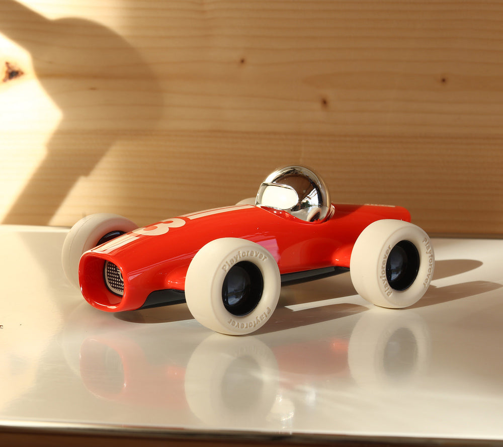 You can almost hear the roar of the engine as Malibu stands poised, ready for the race. Drawing inspiration from the early Maserati Formula 1 cars of the 20s and 30s but with a modern Playforever twist, the Malibu racing car is built for speed. With a pure and simple cigar tube chassis, long nose and wide open mouth, its shape is sleek and stream-lined whilst its wide profile, low-to-the-ground rubber tyres give it a bold confidence to rival all others at the starting grid.