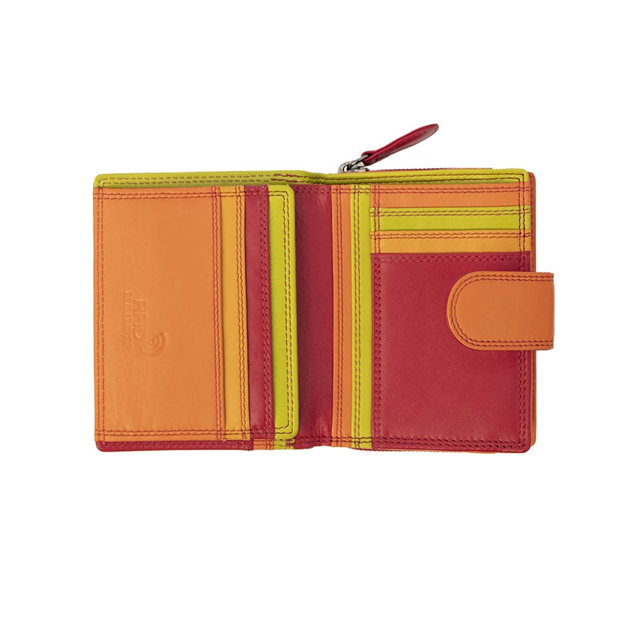 Soft Leather Colourful Trifold Purse - Camellia London / Red-Multi