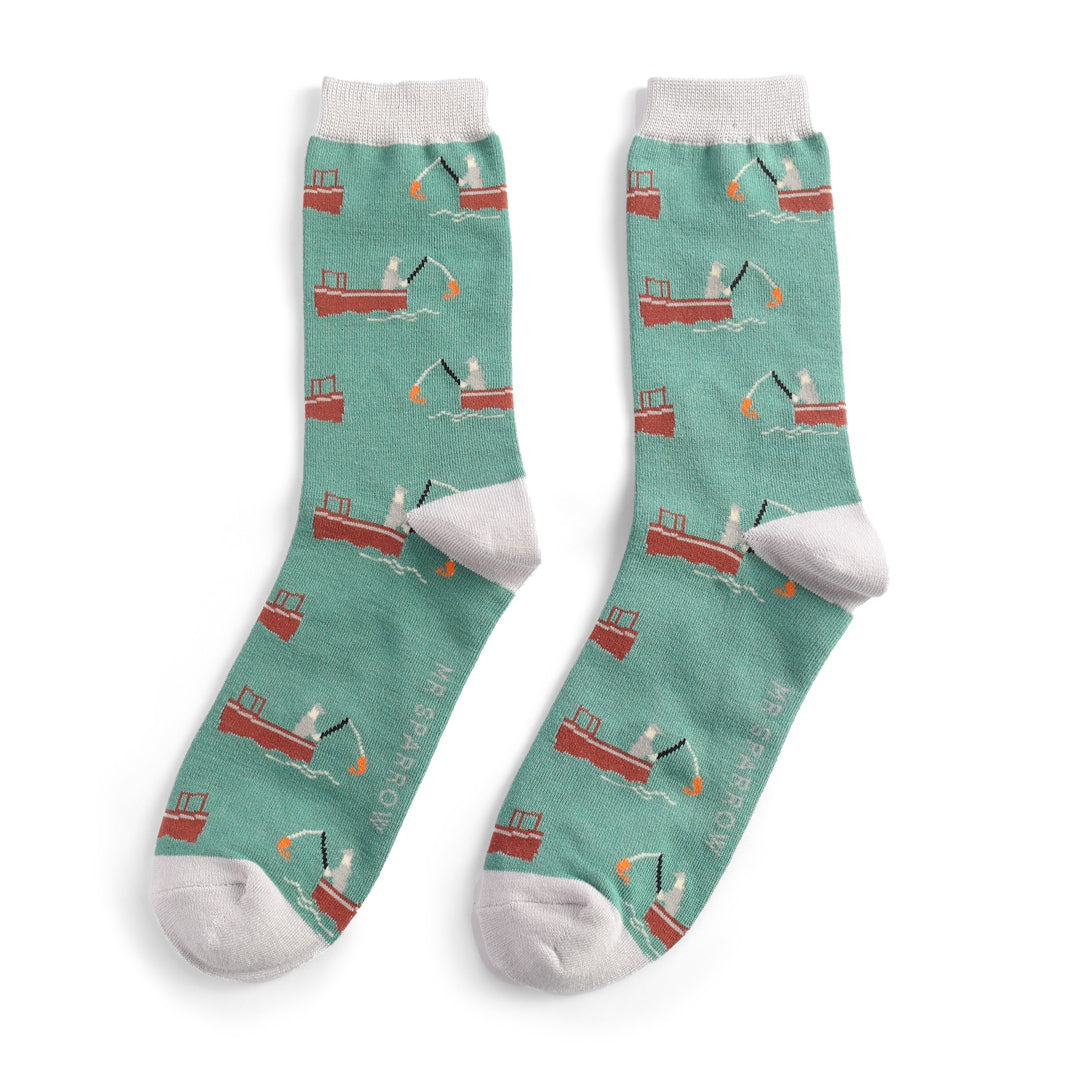 Ladies Cuff Sock -Grey/Green/Blue Stripes