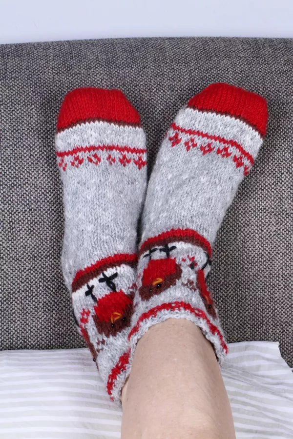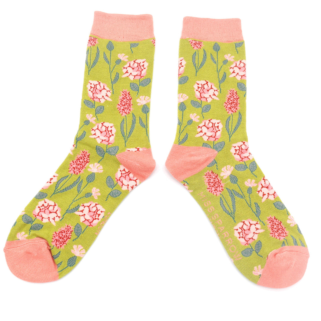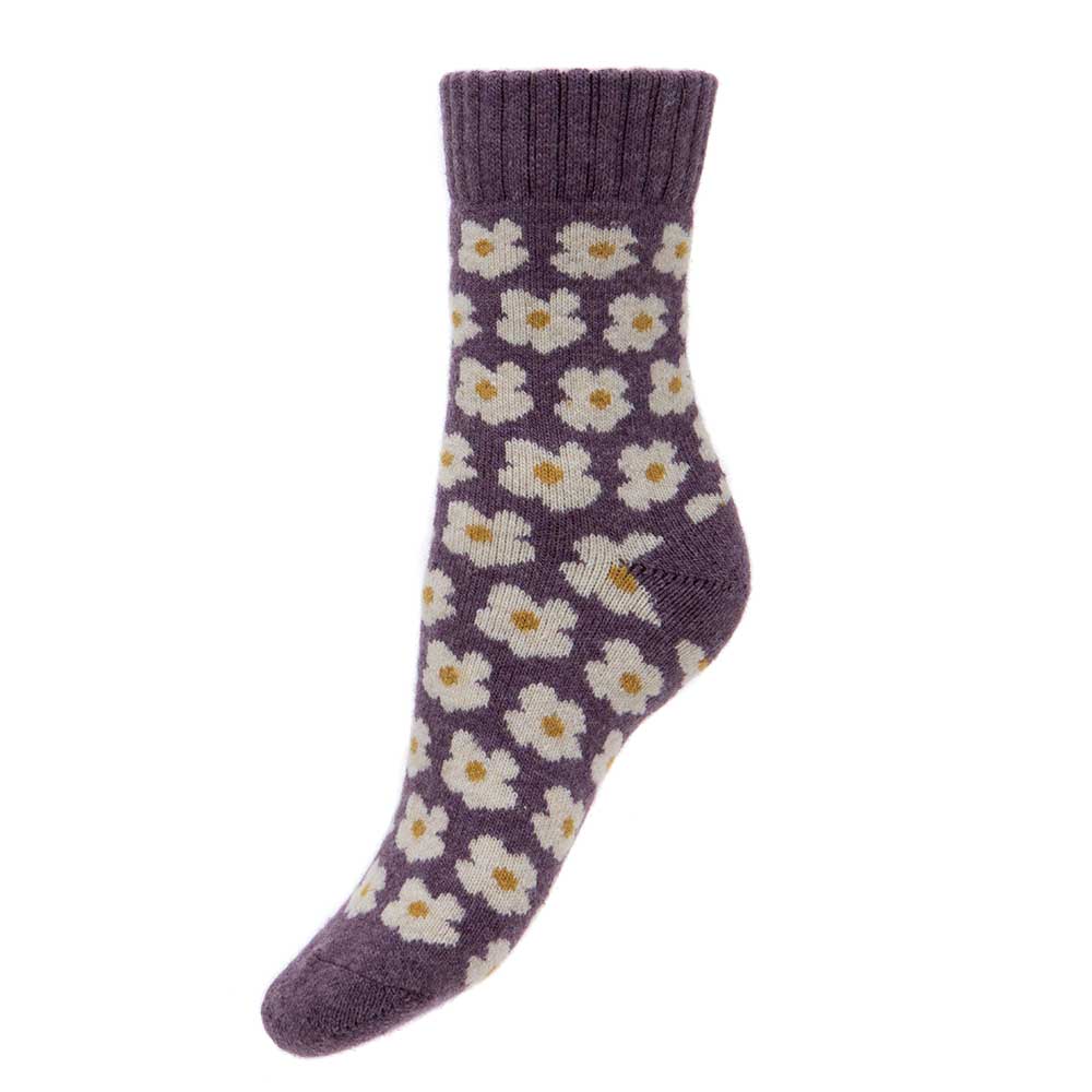Ladies wool blend Daisy ribbed cuff Socks - Purple