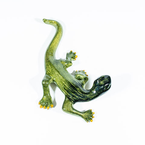 Each Gecko has a wall hanging attachment built into their bases so they can be hung on a screw and displayed on any indoor or outdoor wall.