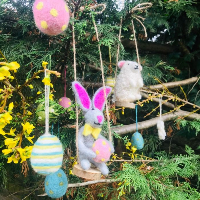 Green Felt Tree With Beaded Garland Hanging Decoration