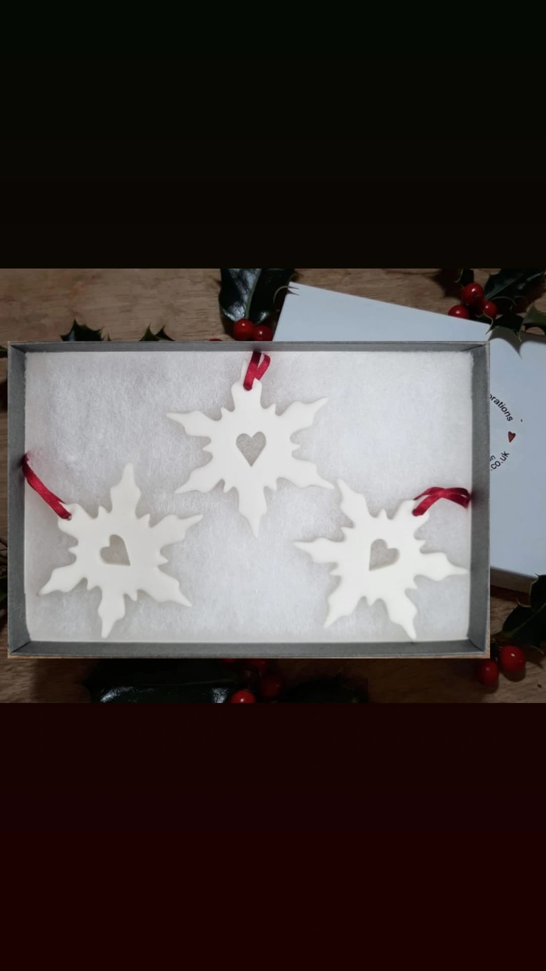 Trio Of Ceramic Snowflake Decorations - Open Heart