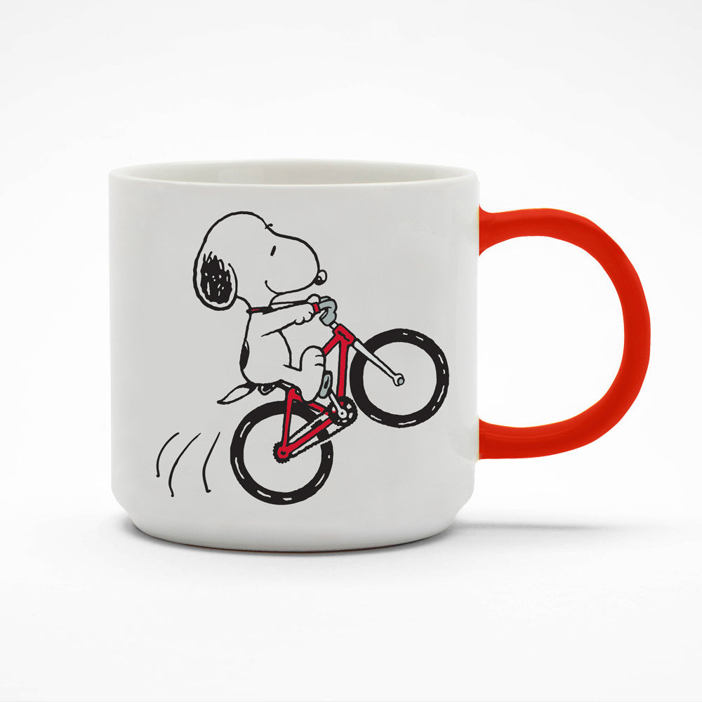This fantastic Vegan Fine China Snoopy mug features Snoopy doing a wheelie on his bike! To the reverse is the slogan 'born to ride'. Perfect mug for a Snoopy fan or someone the loves to be out on their bike!
