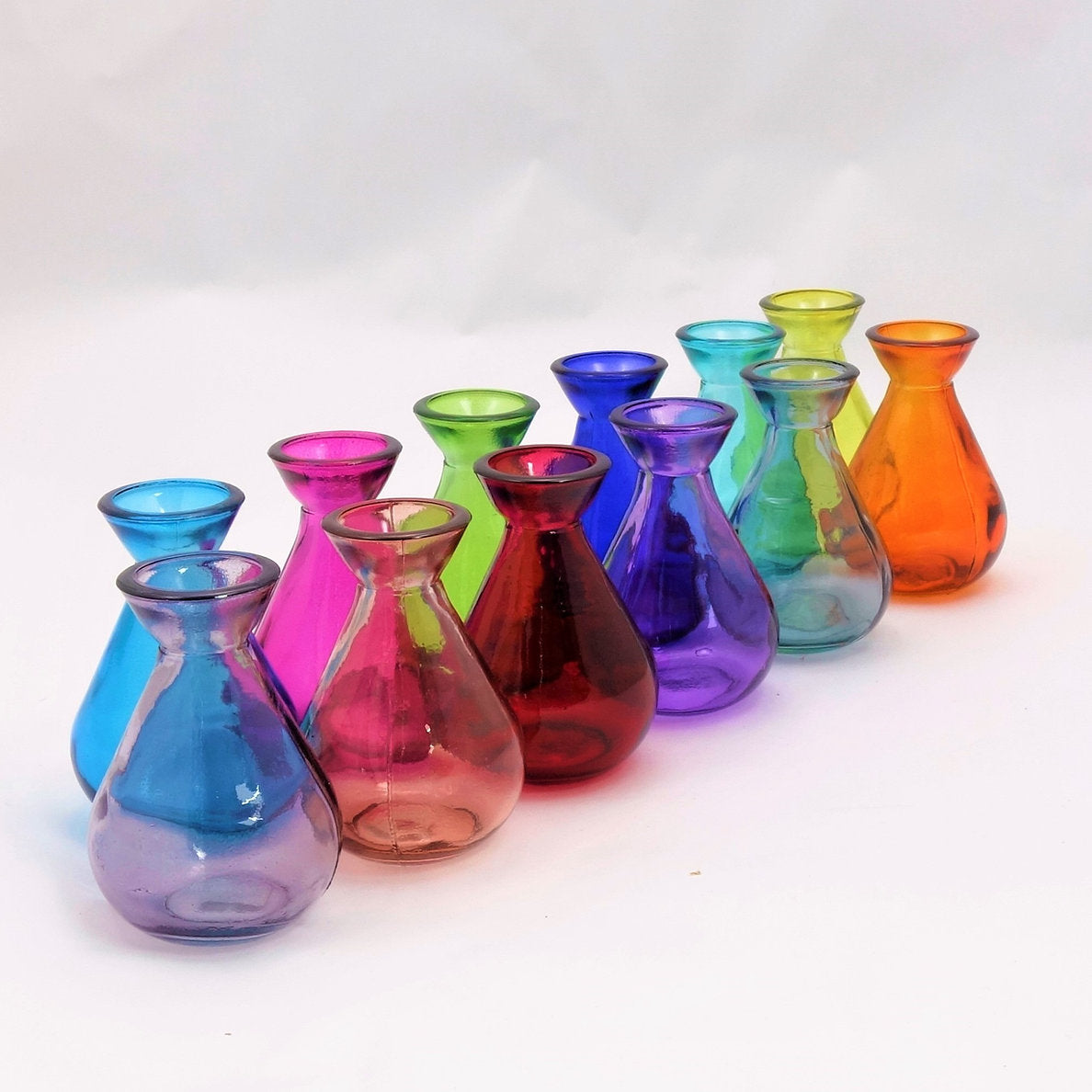 Pretty, colourful bud vase made from 100% recycled glass. It looks lovely on its own or several clustered together in a single colour or mixed with any of the other lovely colours available. Perfect for dressing a table for a special occasion.