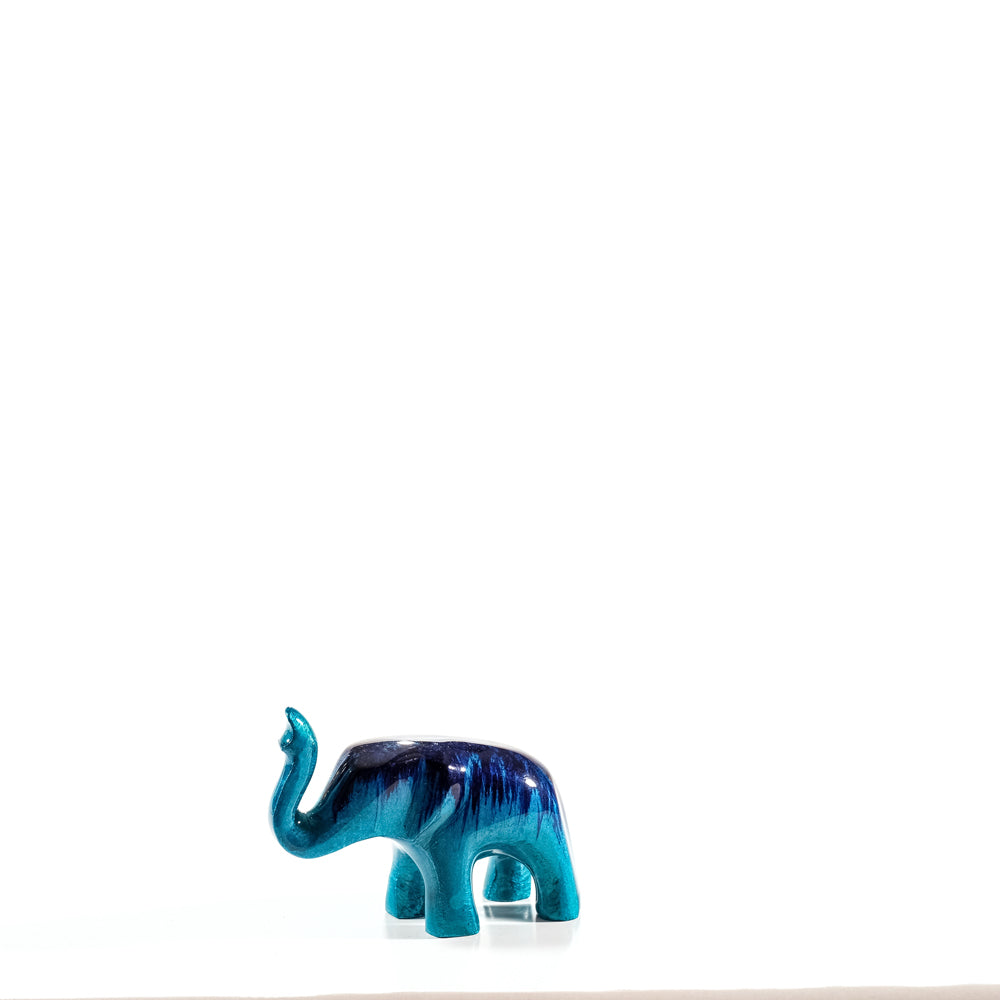 Elephant Ornament, Trunk Up - Brushed Aqua
