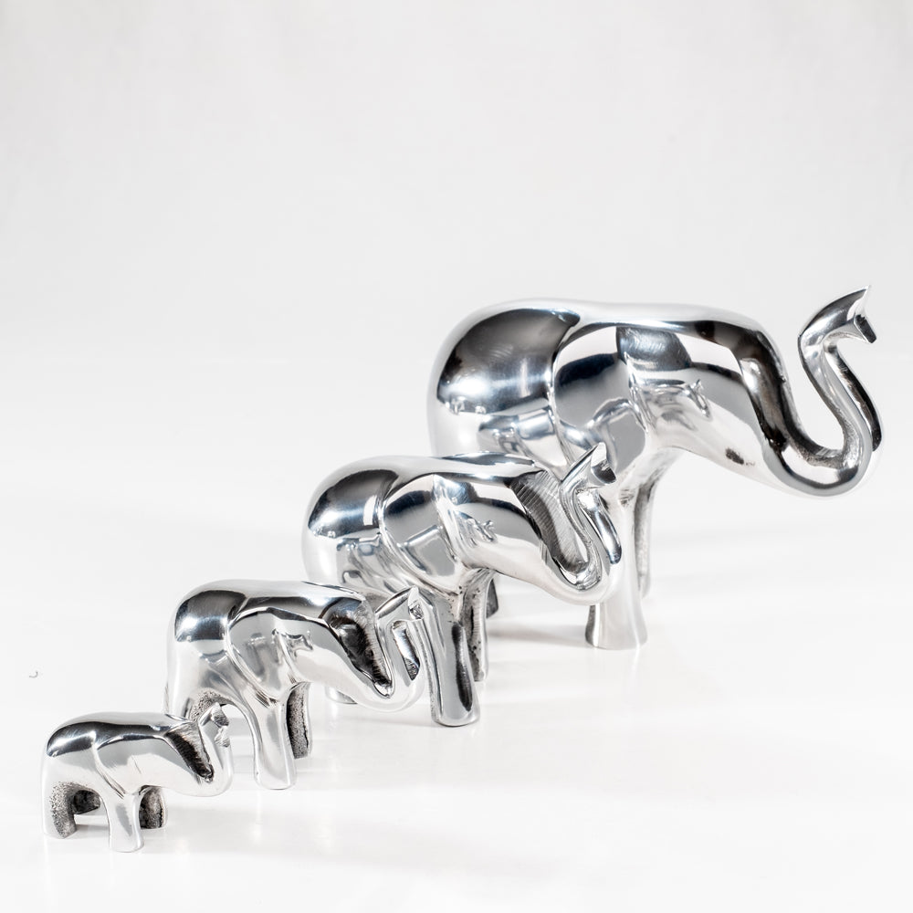 Gorgeously crafted elephant statues bring life to any space! Crafted with recycled aluminum by Indian artisans for Fair Trade. Eco-friendly and sustainably made - a great gift for the eco-conscious!