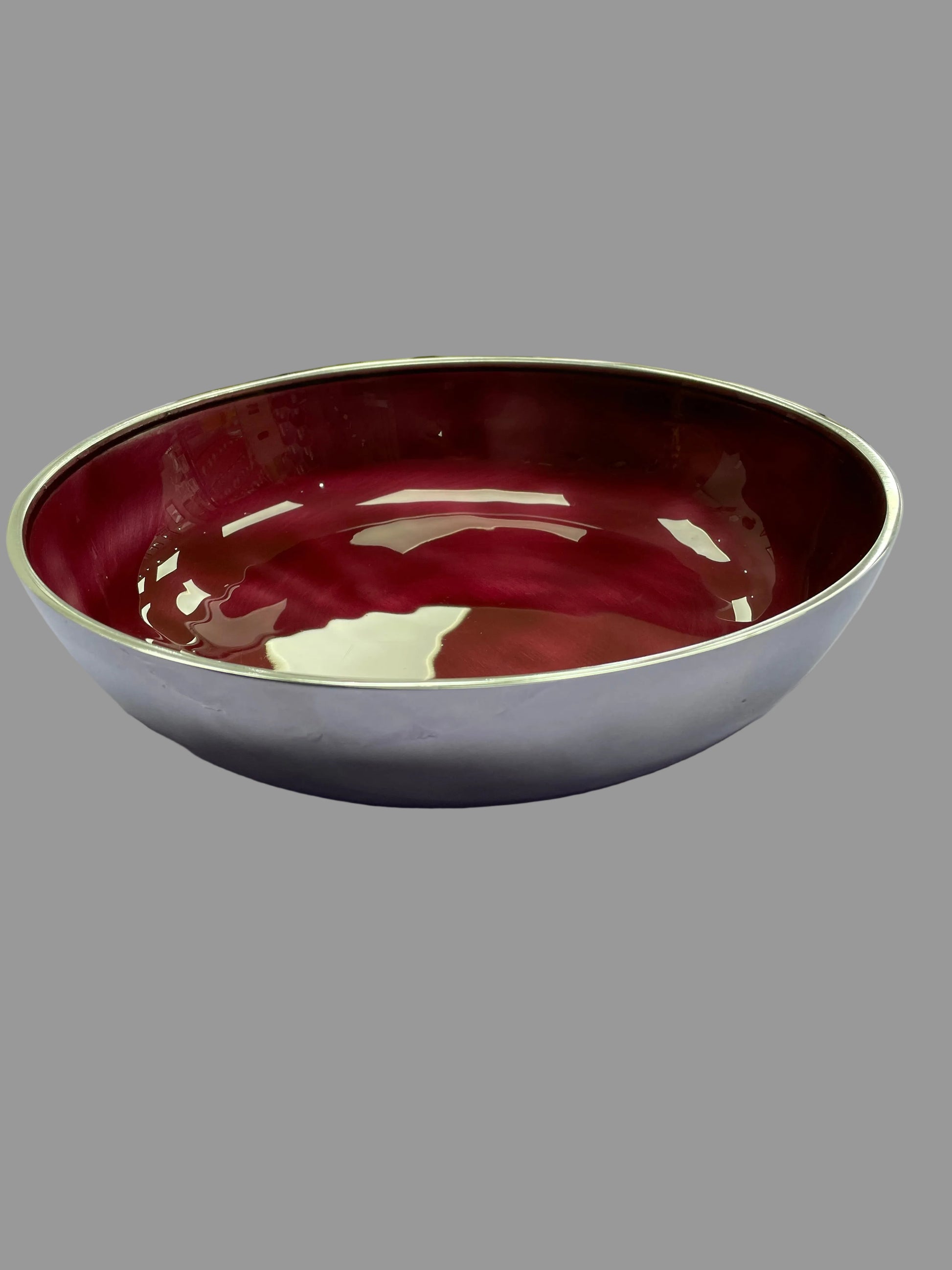 A beautiful designed bowl that makes a stunning for a centre piece for the kitchen or the living room. The translucent colour gives a rich and deep colour, through to the recycled aluminium beneath. The outside is highly polished by hand. Each piece will be slightly different given the handmade nature of the item.