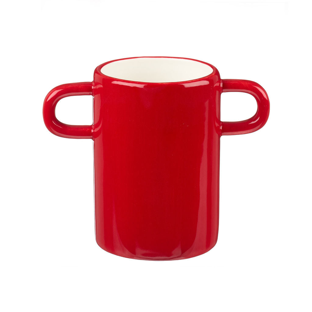 This handmade red vase showcases a bold, vibrant hue paired with a unique black and white cat illustration, reflecting expert craftsmanship and original artistry. Each piece is individually crafted, ensuring no two are alike. Its striking colour and distinctive design make it a standout decorative element that adds character and sophistication to any setting.