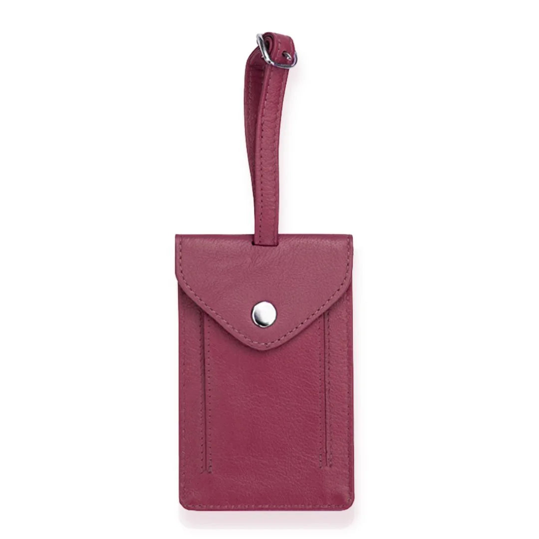 Leather luggage tag for the frequent traveller. For discretion, the address is covered with a flap secured with a popper