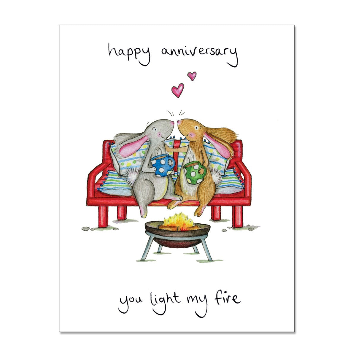 Happy Anniversary, You light my fire. Printed using Vegetable Inks. Blank inside with a quality vibrant blue envelope.