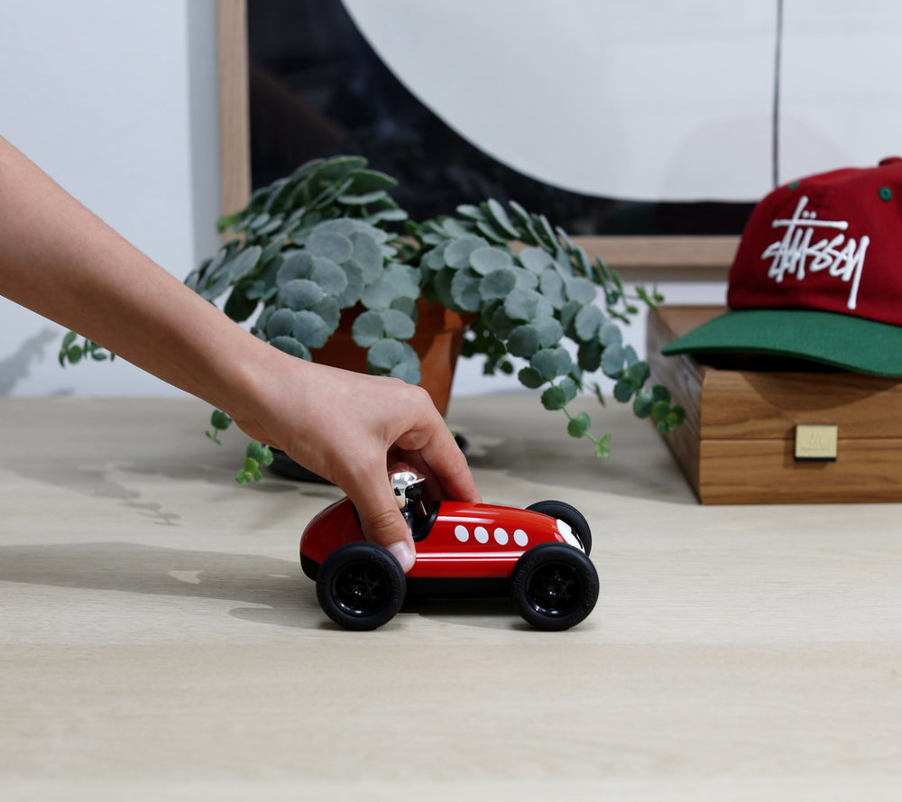 Loretino Marino racing car is a cute and playful scaled-down version of its big brother (and the very first car in the Playforever collection), Bruno.