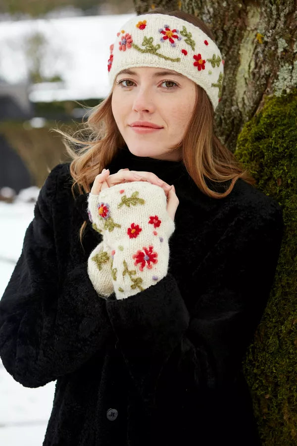 Women's hand knitted wool winter fair-isle patterned ear warmers.