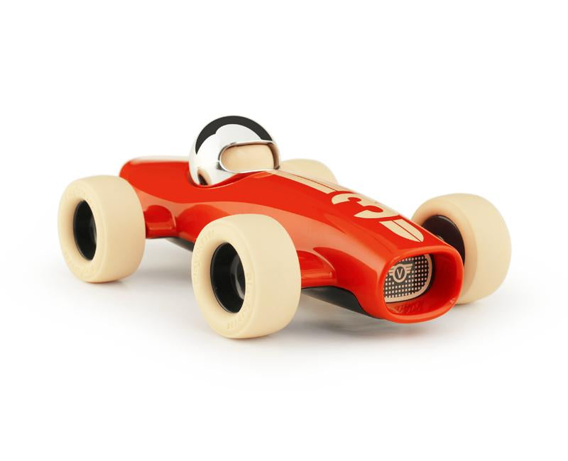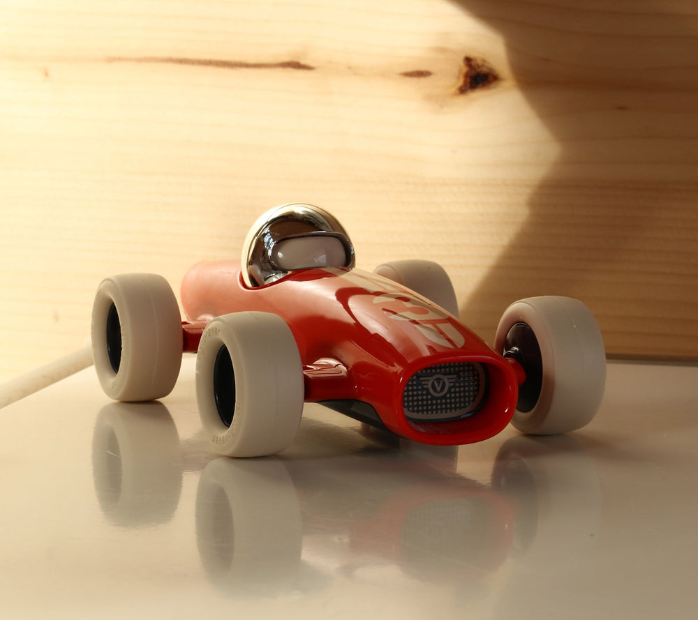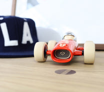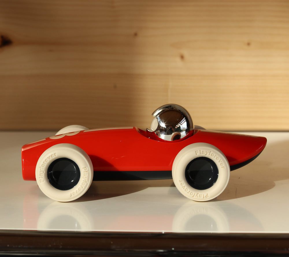 You can almost hear the roar of the engine as Malibu stands poised, ready for the race. Drawing inspiration from the early Maserati Formula 1 cars of the 20s and 30s but with a modern Playforever twist, the Malibu racing car is built for speed. With a pure and simple cigar tube chassis, long nose and wide open mouth, its shape is sleek and stream-lined whilst its wide profile, low-to-the-ground rubber tyres give it a bold confidence to rival all others at the starting grid.