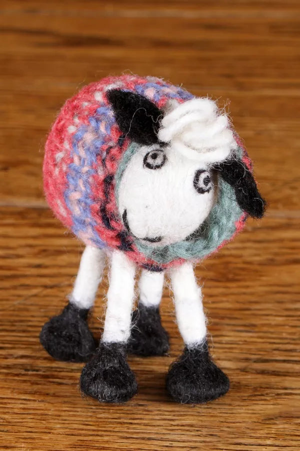Hand felted wool home ornament, cute animal design. Multicolour lamb. Fair Trade & Handmade in Nepal