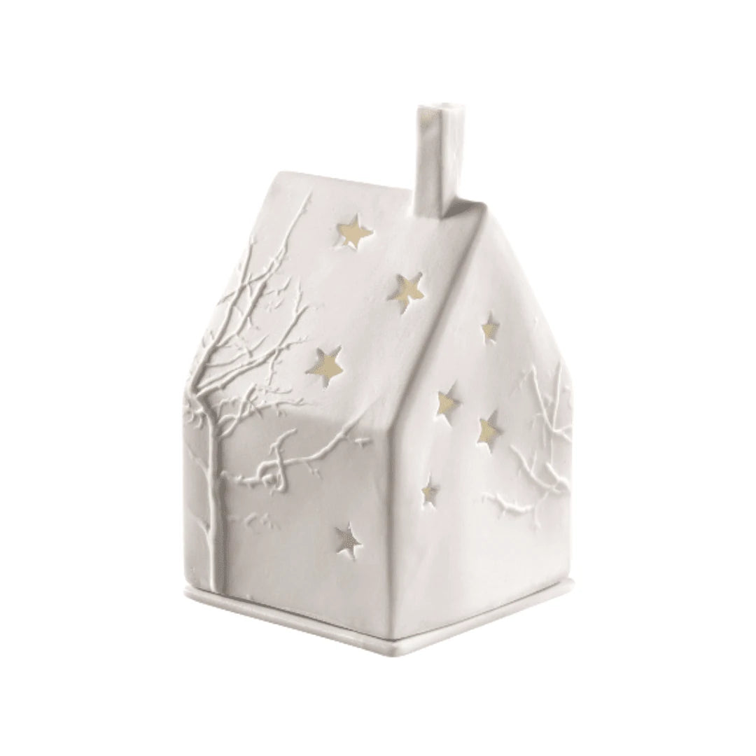 Elegantly handcrafted tealight holder, made from porcelain and in the design of a stylish house.