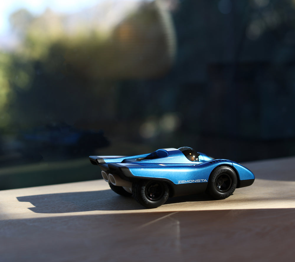Block your ears, Zemonsta is firing up and even when idling one's skin begins to tingle. Another formidable and fierce track eater has arrived and we think Ken could be a little nervous (we're shaking too). Gorging on chunks of inspiration from the iconic Porsche 917 we at Playforever set out to abstract the beast of beasts. In fact, with all the Zemonsta untamed fury, we'll probably need to unload some extra rows of Sunray tires for test day. Zemonsta is hungry, move out of the way or be devoured.